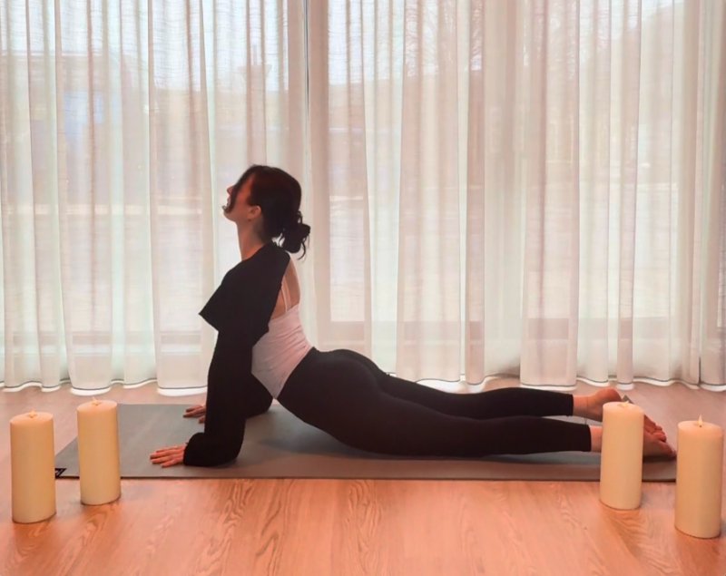 Rolling Cobra helps counteract slouching by gently opening the chest and front body, while strengthening the muscles that support good posture. This is less about how high you lift, and more about creating space across your chest. Start small and build - flowing gently through your spine.